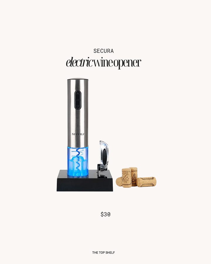 I’m not afraid to admit I love wine but struggle to open my own bottles. An electric wine opener is—of course—extra but shortens the process of opening my Sauvignon Blanc. Or for you, your drink of choice.